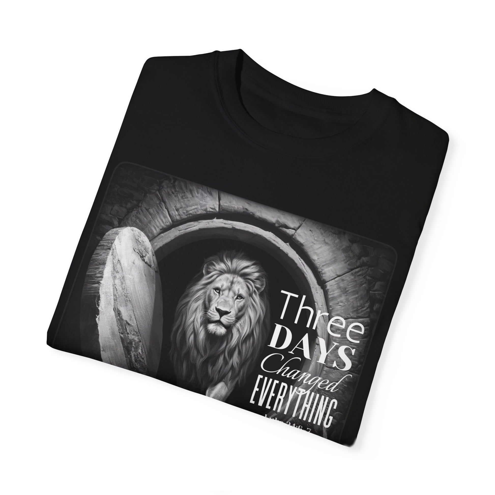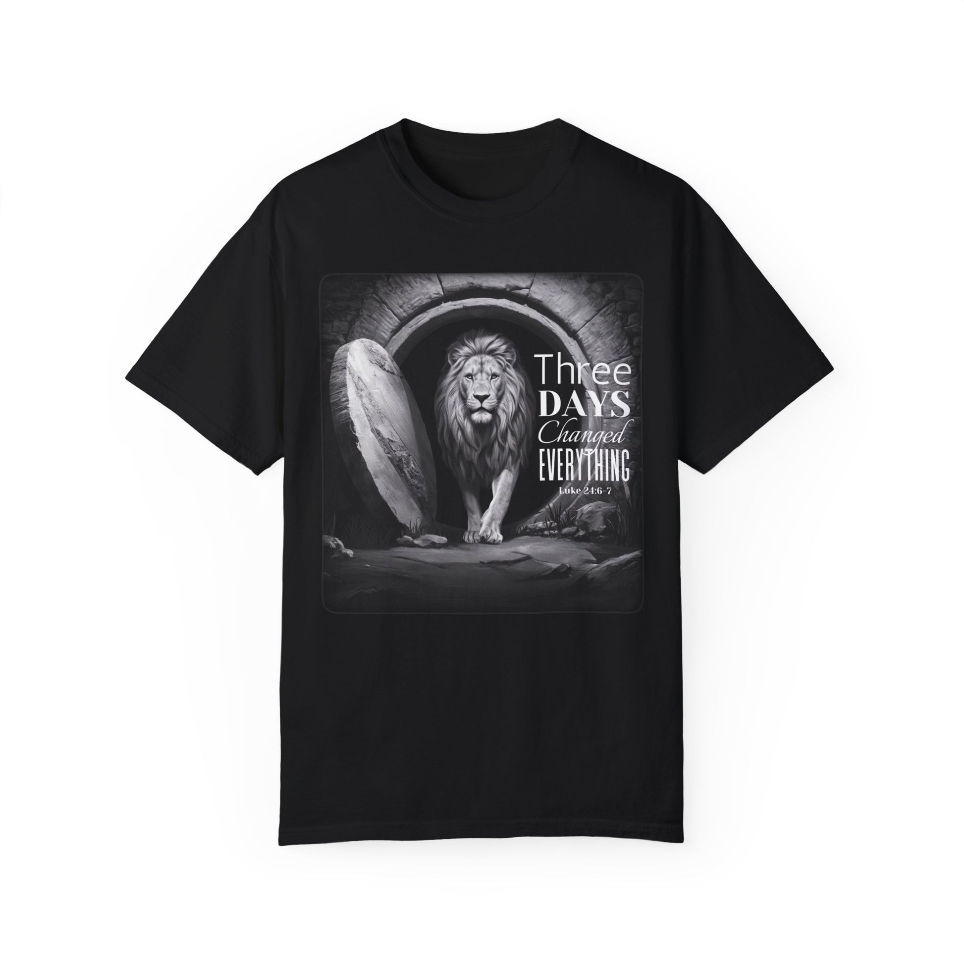 Three Days Changed Everything Christian T-Shirt – Bold Lion of Judah Resurrection Design
